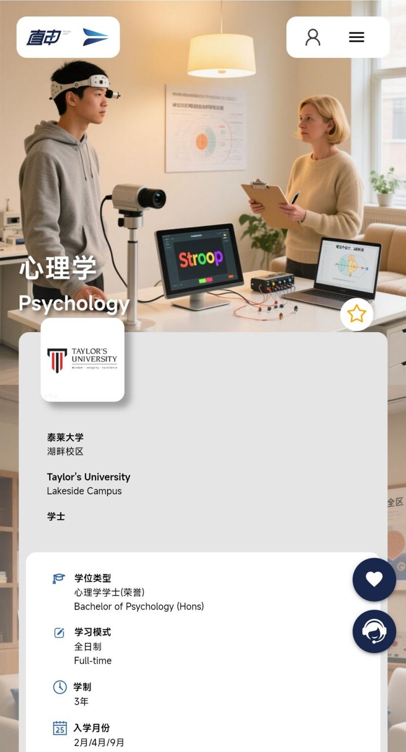 泰莱大学的心理学(荣誉)学士学位课程,是一个为期3年、涵盖心理学主要分支的综合性理学项目。课程严格遵循国际学术标准,系统介绍从生物心理学到社会心理学的核心知识体系,并着重培养学生设计、执行与评估心理学研究的实证能力。通过理论学习与实验实践的结合,学生将学会以科学的视角分析人类行为,并为解决现实世界中的个人、组织及社会心理议题做好准备。